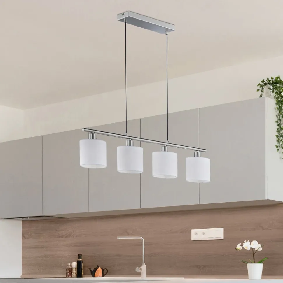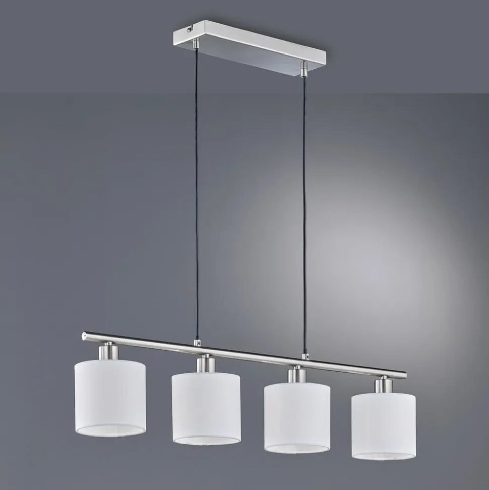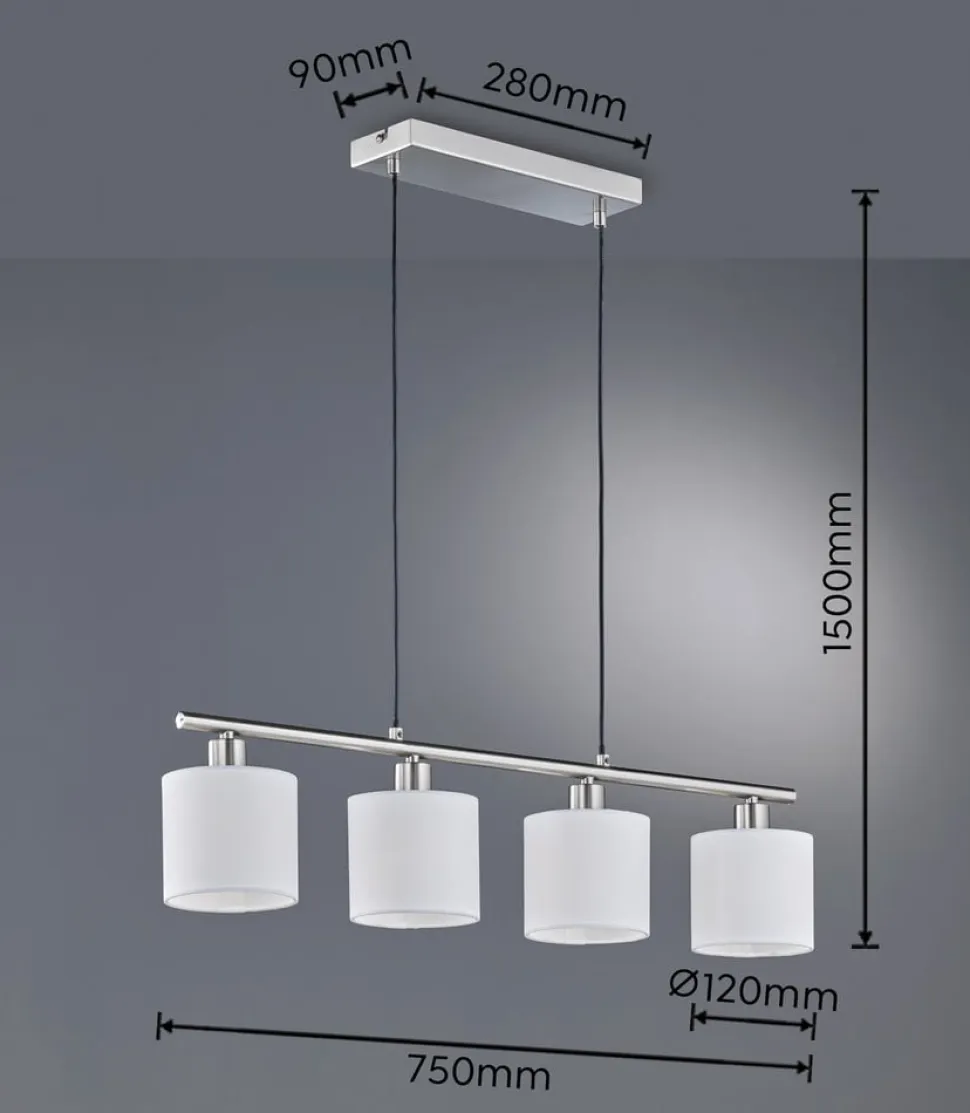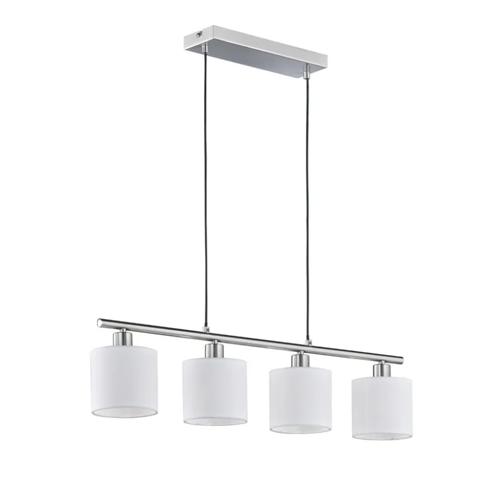 Tommy hængelampe, nikkel/hvid, længde 75 cm, 4-lys, stof