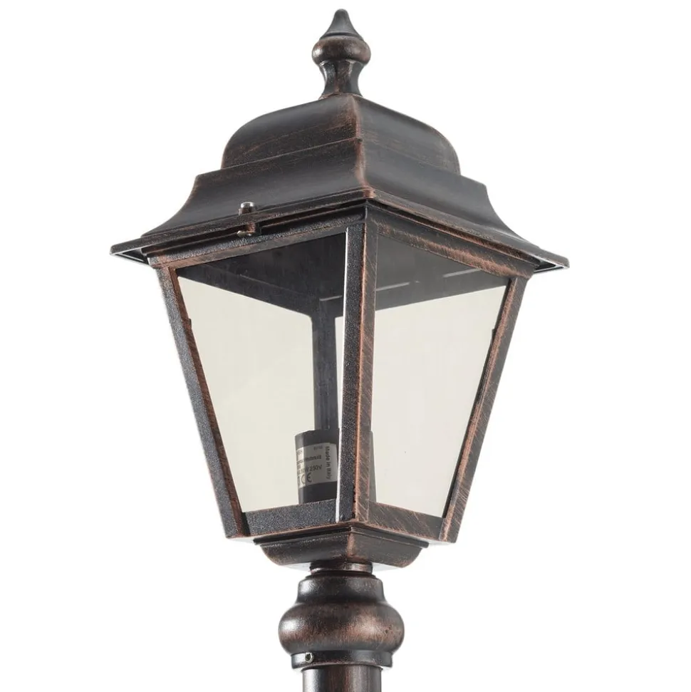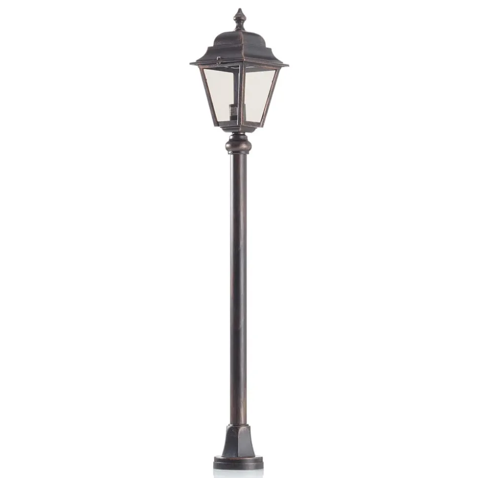 Toulouse – en stibelysning med antik charme Antikke lanterner var inspirationen til designet af den smukke Toulouse-stibelysning. Armaturets base, fod og lanterne er lavet af aluminium og pulverlakeret i et antikt kobberlook. Takket være dette og IP43-beskyttelsesgraden er den optimalt beskyttet mod vejrliget. Takket være det klare glas, som kun er let tonet, oplyser lyskilden – LED er også muligt – store områder.