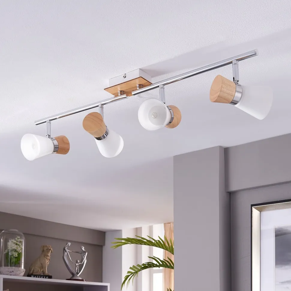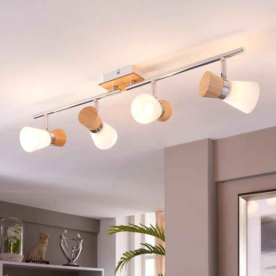 Moderne og hyggelig: Træspotten Vivica med fire bevægelige spothoveder