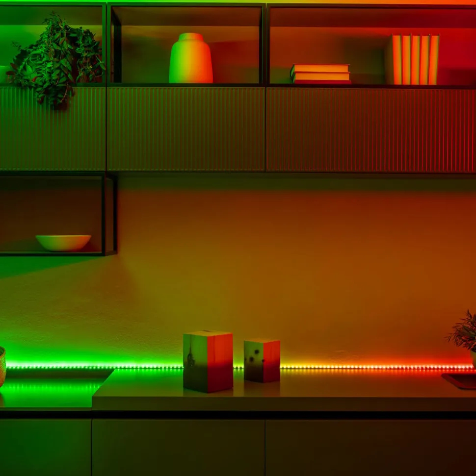 Twinkly Light Line – den farverige LED-strip til unikke lyseffekter Light Line LED-strip fra Twinkly er en smart LED-strip, der kan styres via en app eller endda en stemmeassistent. Takket være styringen kan der skabes unikke effekter, farvegradueringer og farveanimationer, og det er også en leg at skifte i selvskabte grupper via appen. Twinkly-appen giver dig adgang til en lang række færdige effekter og animationer, men du kan også skabe dine egne effekter fra bunden ved hjælp af FX Wizard-skabelsesværktøjet. Twinkly Line kan grupperes med andre Twinkly-enheder for at skabe større, synkroniserede lysinstallationer, og LED-strippen har en selvklæbende og magnetisk bagside, som gør den nem at montere overalt. Uanset om den er tydeligt installeret eller gemt væk et sted, vil dens unikke belysningskoncept og sorte, elegante look gøre den til et HighLight i dine egne fire vægge.
