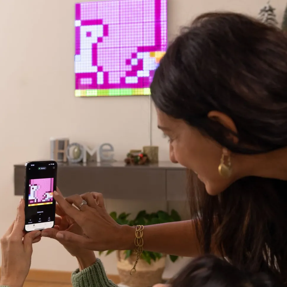 Twinkly RGB-Square til udvidelse Dette farverige panel bruges til at udvide LED-lysdekorationen med Twinkly RGB-Squares. Separat betjening er ikke mulig – der kræves et startsæt. Hvert startsæt kan udvides til i alt op til 15 paneler.