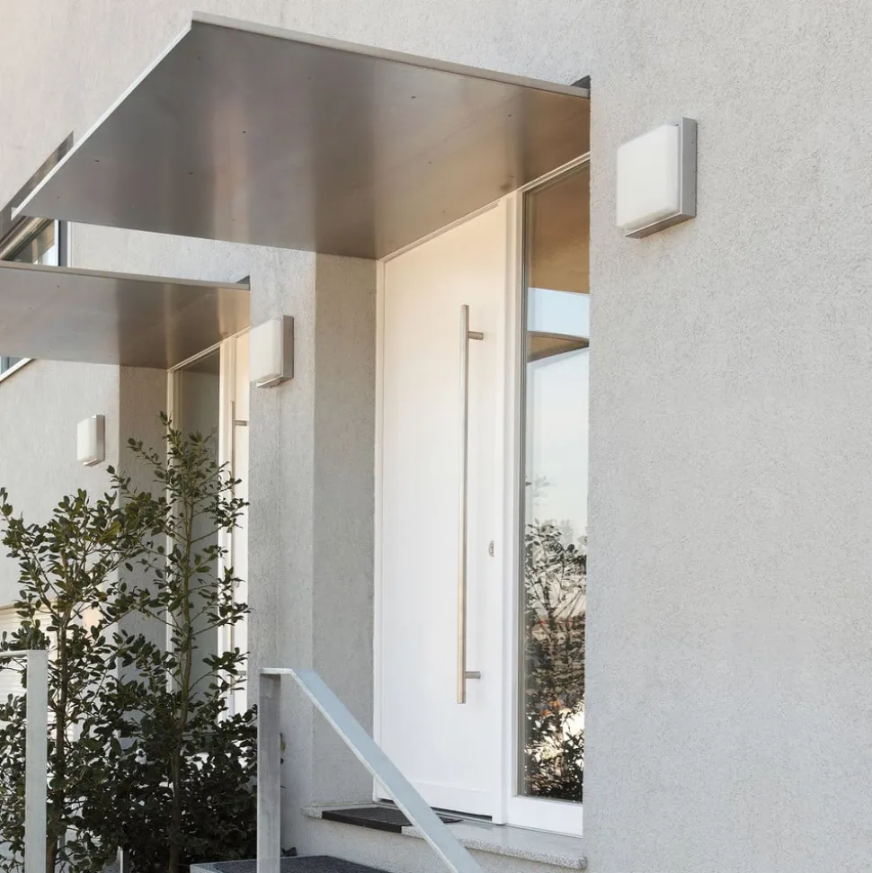 Takket være sin enkle firkantede form og ramme i rustfrit stål er udendørs LED-væglampe 046 ideel til moderne omgivelser. Den har en stor opal glasdiffusor, der sikrer et blændfrit varmhvidt lys. Dette aktiveres kun ved behov, da lampen er udstyret med en integreret, justerbar bevægelsessensor.