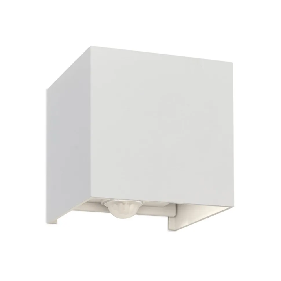 Udendørs væglampe Cube-S, hvid, metal, bevægelsessensor
