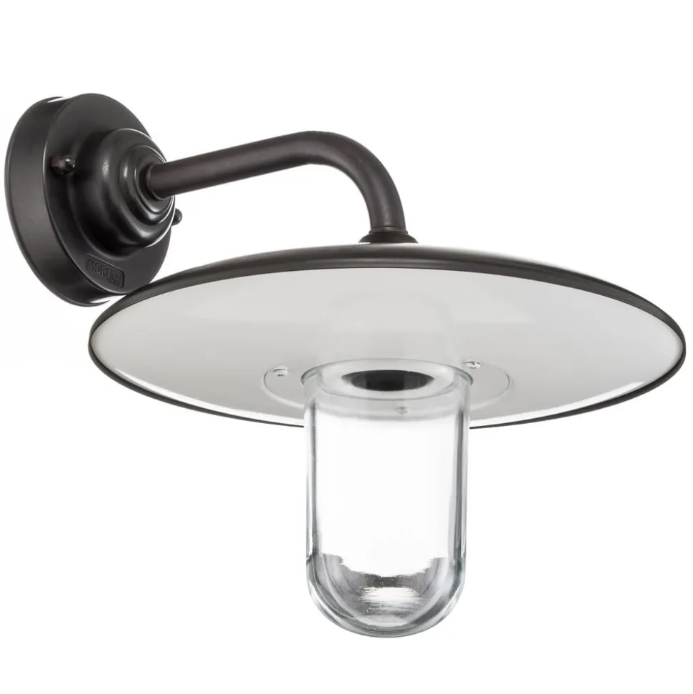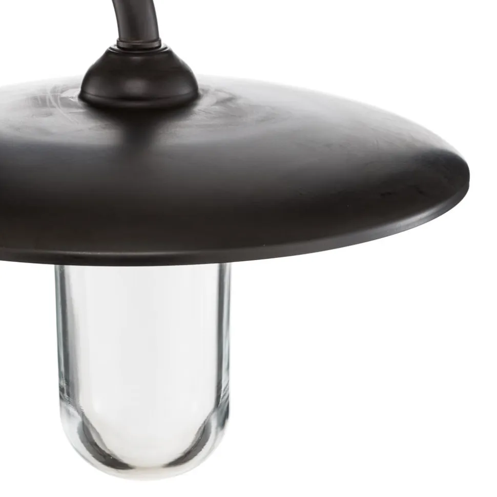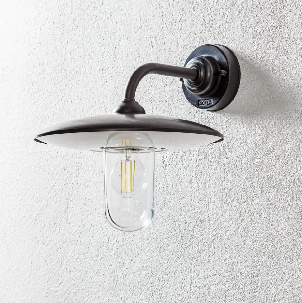 Golfo er en enkel udendørs væglampe fremstillet af messing og glas. Takket være disse materialer kan den også bruges i nærheden af kysten, da den tåler vejrforholdene der. Vægbeslaget, herunder beslaget og den flade skærm, har fået en antik finish, og lampens nedadvendte glas er gennemsigtigt, så pærens lys kan stråle direkte og i fuld lysstyrke til alle sider.