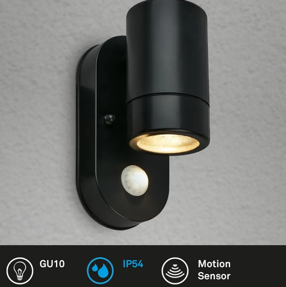 Udendørs væglampe med sensor 3789015, sort, plast, GU10