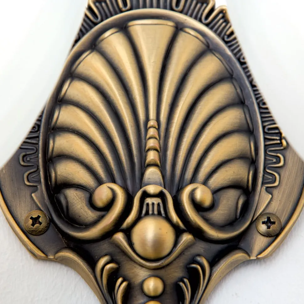 Detaljeret Rocca-væglampeTo hvide skærme og en detaljeret metalramme i klassisk bronze-look kendetegner Rocca-væglampen. Den to-lampe version giver et jævnt blødt ekstra lys i forskellige rum og kombineres bedst med en klassisk indretningsstil. Det indirekte lys bidrager dog ikke kun til belysningen, men sætter også væglampen perfekt i scene, som har en tendens til at se statelig ud.