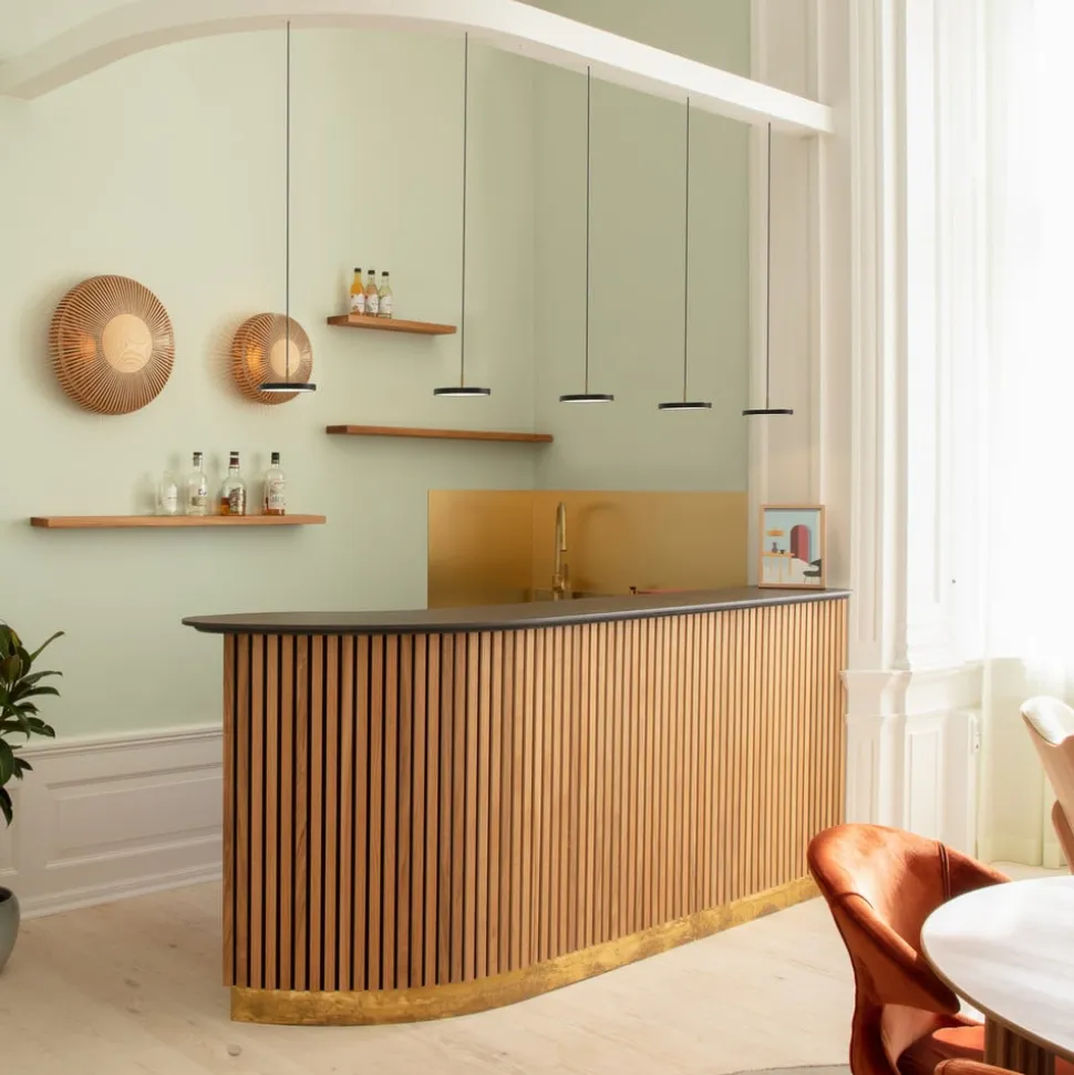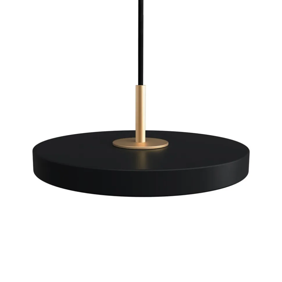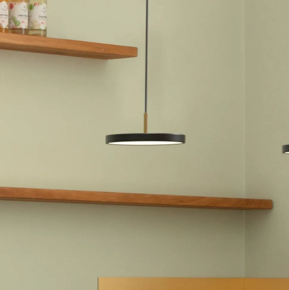 Puristisk LED pendelarmatur Asteria Micro V2, dæmpbarAsteria Micro er et diskret pendelarmatur med små dimensioner, der er perfekt til belysning af en disk eller et bord, især når det kombineres i flere. Den kombinerer et moderne design, moderne teknologi og traditionelt håndværk og kan integreres i mange indretningsstile og rum takket være det slanke, minimalistiske design. Skærmen har et meget fladt design og er fremstillet af aluminium af høj kvalitet. Den er udstyret med varmt hvide LED’er, hvis lys skinner jævnt og blændfrit nedad gennem et dæksel af akryl. Mellem skærm og kabel sidder et messingfarvet element, der skaber en elegant og klar overgang mellem de to komponenter og skaber en detalje, der harmonisk afrunder det samlede udseende.- dæmpbar med ekstern lysdæmperLED-pendellampen Asteria Micro V2 fra UMAGE er et design af Søren Ravn Christensen, medstifter af belysningsvirksomheden UMAGE. En puristisk stil og en toneangivende belysningsteknologi kendetegner virksomhedens armaturer og gør dem til alsidige lysobjekter med en helt særlig flair, som beriger de mest forskellige indretningsstile. UMAGE-mærket, der har base i København, har til formål at kombinere den enkle, funktionelle skandinaviske stil med håndværk og moderne teknologi, samtidig med at der fortsat er fokus på en miljøbevidst tilgang til naturen.