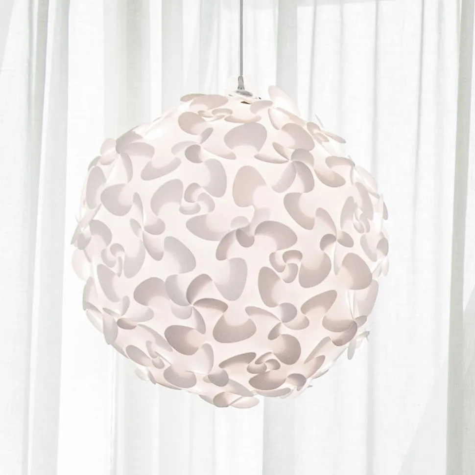 Hvid rund Lora-pendel med fascinerende skærm Den runde skærm på Lora-pendlen består af næsten 65 næsten identiske dele, der er sat ind i hinanden for at skabe en spændende overflade. Som et hav af blomster dækker de enkelte dele hele den runde overflade. Formerne kunne næsten ikke være mere spændende – en sand opdagelsesrejse for øjet. Komponenterne stikker lidt ud, hvilket giver lampeskærmen sine rastløse konturer og henleder opmærksomheden på sig selv. Ophængets enkle tekstilkabel holder blikket på kunstobjektet. Lyskilden er skjult indeni, så lyset kan udsendes blændfrit over hele fladen, hvilket gør Lora til et centralt belysningsobjekt selv i store rum. De fine linjer og det dekorative look gør Lora særligt velegnet til opholdsrum. Men den gør også en god figur i soveværelset eller entreen og giver belysning til store områder. Ved hjælp af en ekstern lysdæmper og en dæmpbar lyskilde kan lyseffekten justeres for at skabe den rette atmosfære. Den danske producent af designarmaturer UMAGE lægger vægt på kombinationen af æstetik og funktionalitet, som afspejler den skandinaviske livsindstilling og aldrig taber bæredygtigheden af syne.