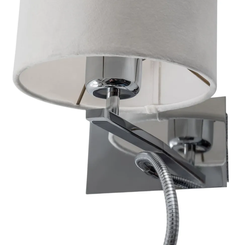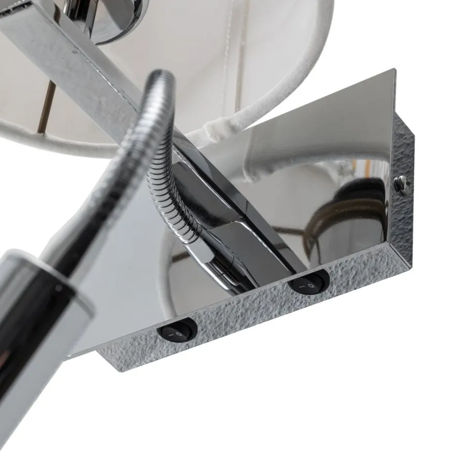 Væglampe Bilo forener moderne design med praktisk funktionalitet og er et stilfuldt element til ethvert hjem. Fremstillet af højkvalitets tekstil og robust stål, imponerer denne lampe med sin elegante kombination af hvid og kromfarvet finish. Konstruktionen med 2 lyskilder sikrer en jævn belysning, mens den integrerede læselampe giver mulighed for målrettet belysning. Denne lampe er ideel til brug i stuer, soveværelser eller spisestuer og passer perfekt ind i moderne indretningsstilarter.