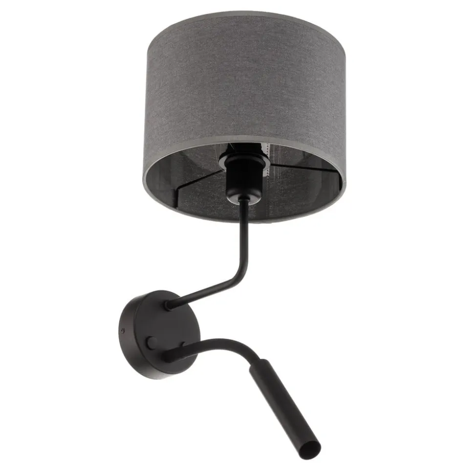 Væglampe Hotel Plus med læselampe forener moderne design med praktisk funktionalitet. Fremstillet af højkvalitets tekstil og robust stål passer den perfekt ind i forskellige rumkoncepter, hvad enten det er i soveværelset, stuen eller spisestuen. Kombinationen af grå og sorte farver giver lampen en tidløs elegance, der værdiger ethvert rum.