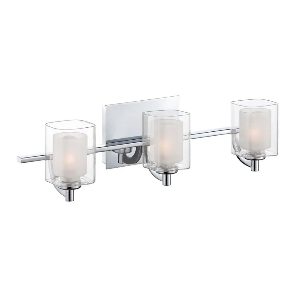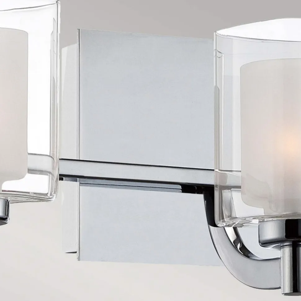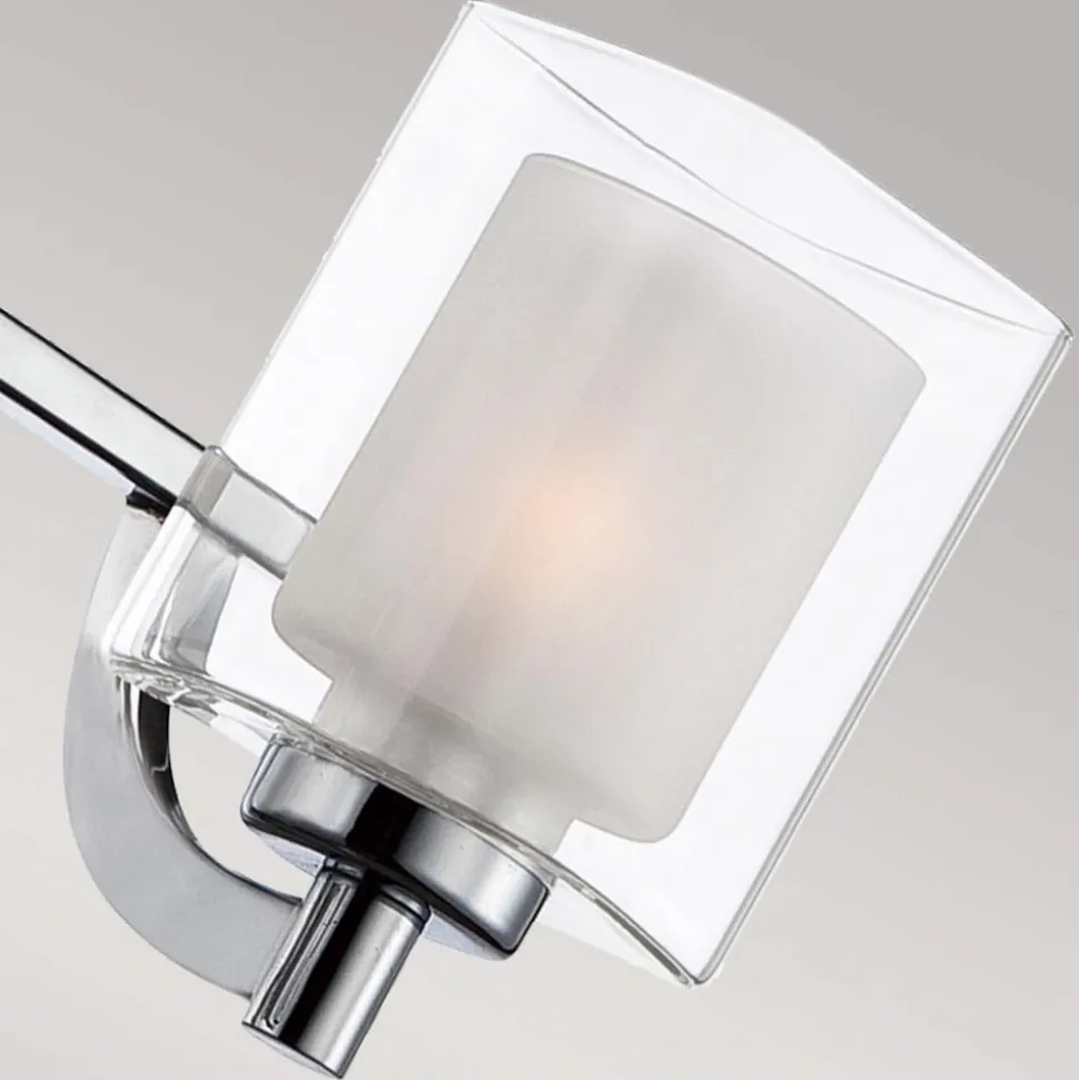 Kolt-væglampe med IP44-beskyttelse, tre lamper Kolt-væglampen med tre lamper imponerer med sit enkle design af stål og glas med en elegant, poleret kromoverflade. Armaturet er udstyret med tre dobbeltlagede glasskærme. De indre, mindre skærme er lavet af sandblæst glas og blokerer lyset fra pærerne, mens de større ydre skærme, som omgiver de små skærme, er lavet af klart glas, hvilket skaber et sofistikeret look og en særlig lyseffekt. IP44-beskyttelse gør armaturet til den perfekte væglampe til badeværelset.