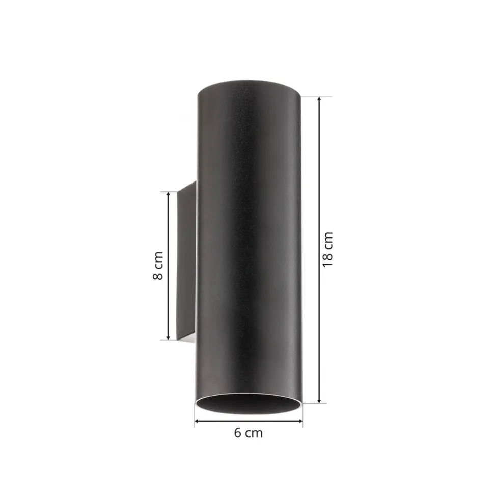Matsort Marley væglampe, lysudslip på to sider Fremstillet af metal i en cylindrisk form og udstyret med lysudtag i toppen og bunden er den sorte Marley væglampe en effektiv ekstra lyskilde på væggen. Flere væglamper på en væg ser særligt attraktive ud i lange korridorer eller i stuen. Takket være det moderne og enkle design er den ideel til brug i rum med et moderne design. Leveres uden pære.