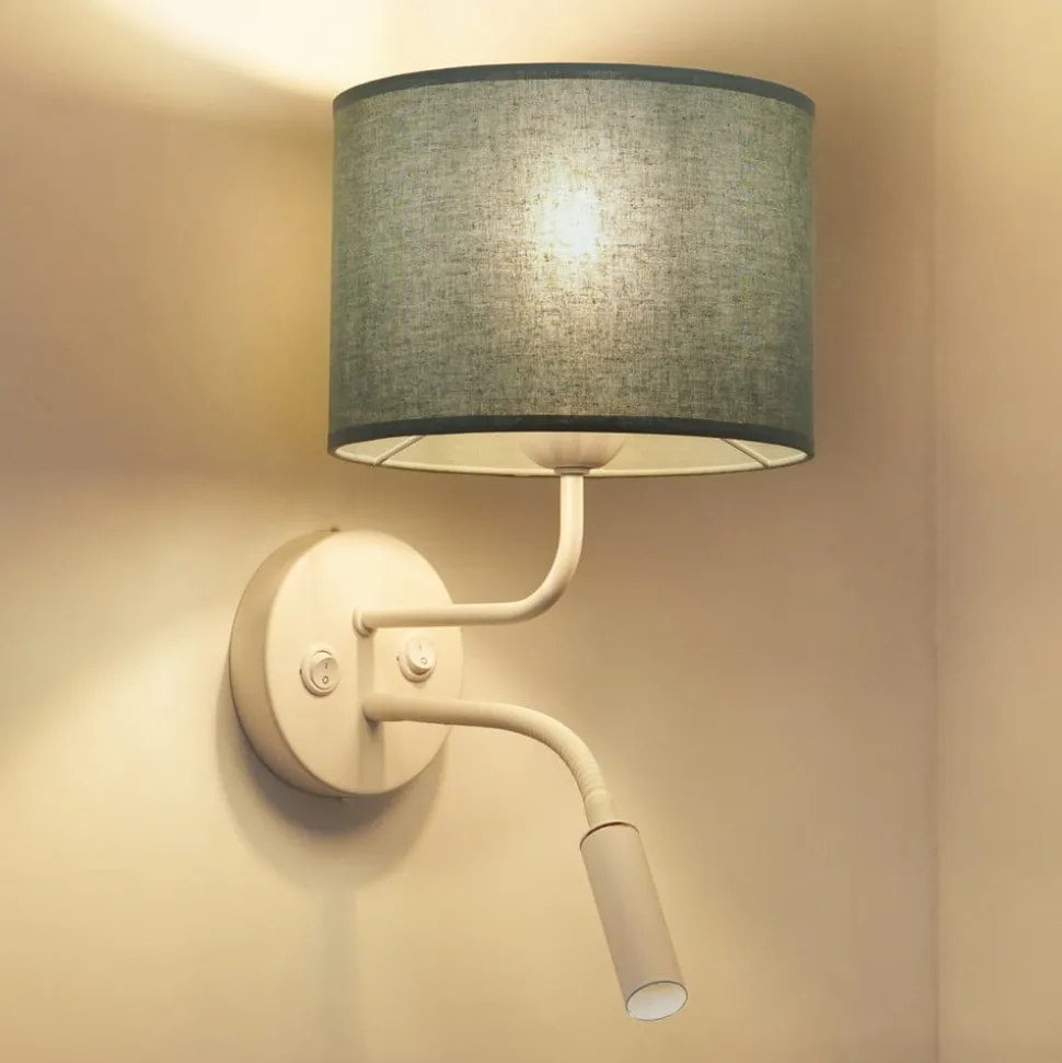 Væglampe med rulle, stof, hvid/sage, læselampe