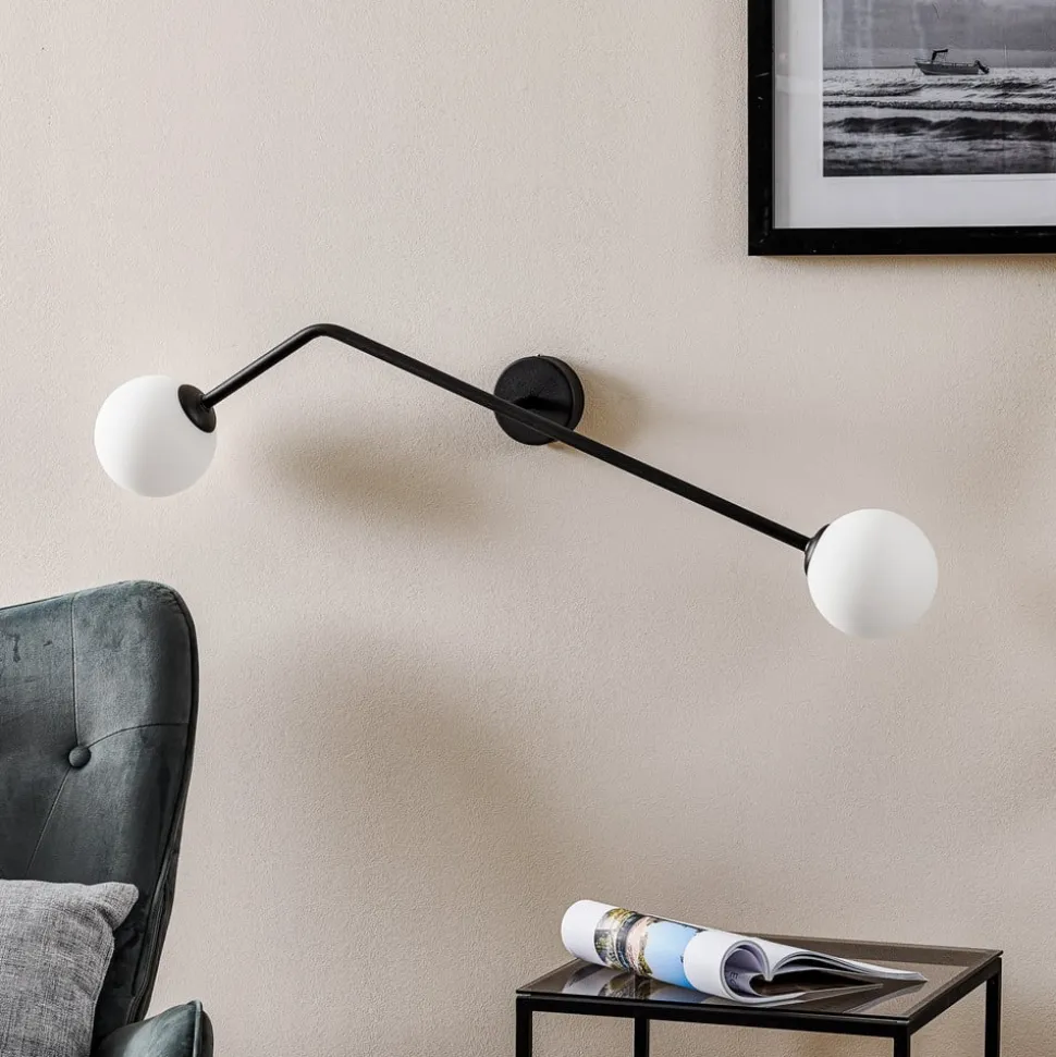 Væglampe Pure kombinerer moderne design med funktionel belysning. Den er fremstillet af højkvalitetsmetal og frostet glas og er et stilfuldt supplement til stuen, soveværelset og spisestuen. Konstruktionen med 2 lyskilder sikrer en jævn lysfordeling, der skaber en hyggelig og inspirerende atmosfære. Den elegante kombination af sort metal og hvidt frostet glas giver ethvert rum en tidløs æstetik.
