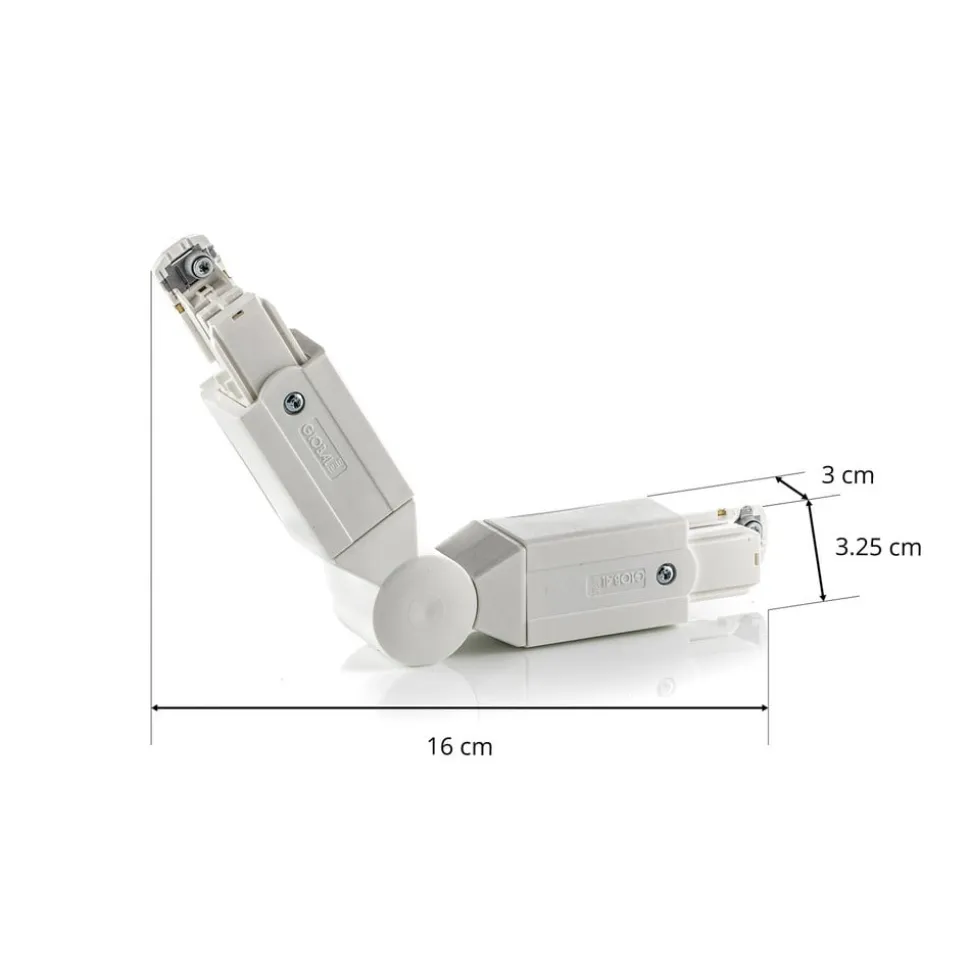 Vinkelforbinder til Noa 3-fase skinne Den fleksible vinkelforbinder til Noa 3-fase skinne kan bruges med en vinkel på 60° – 300°. Den forbinder pålideligt to 3-fase skinner i et hjørne.
