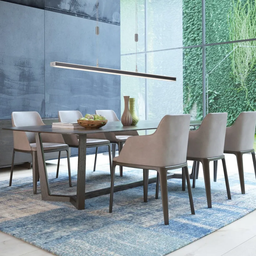 Vitan LED-pendel med styrbar lysfarve (CCT) – integreret lysdæmper Når det gælder belysning, lader Vitan LED-pendlen intet tilbage at ønske. Ud over højdejusterbarheden, som gør det muligt at indstille armaturet til den ønskede ophængningsposition med nogle få enkle trin, giver den styrbare lysfarve (CCT) og dæmpbarheden af LED’erne en absolut fleksibel rumbelysning. LED’erne er installeret, så de lyser opad og nedad. Lysfarven på de to LED-moduler kan justeres separat ved hjælp af en trykknap, i to forskellige varmhvide lysfarver eller i en universel hvid lysfarve. Lyset, der udsendes opad og nedad, kan også dæmpes separat, så f.eks. den indirekte lysudsendelse kan være 100 %, mens det lys, der udsendes nedad, kun skinner blødt.