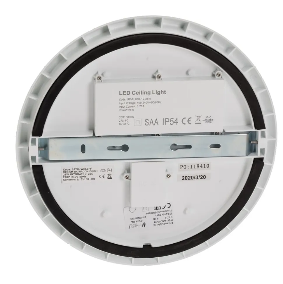 Med en relativt lav strømtilførsel genererer LED’erne indbygget i det runde Welland LED-loftlampe ikke kun en særlig høj lysstrøm, men viser sig også at være særligt energieffektive. For at sikre, at lyset ikke blænder på nogen måde, blev der også installeret en satineret diffusor, som forsigtigt filtrerer lyset og spreder det jævnt i omgivelserne. Takket være IP44- kapslingsklasse er den ideel til brug i badeværelset.