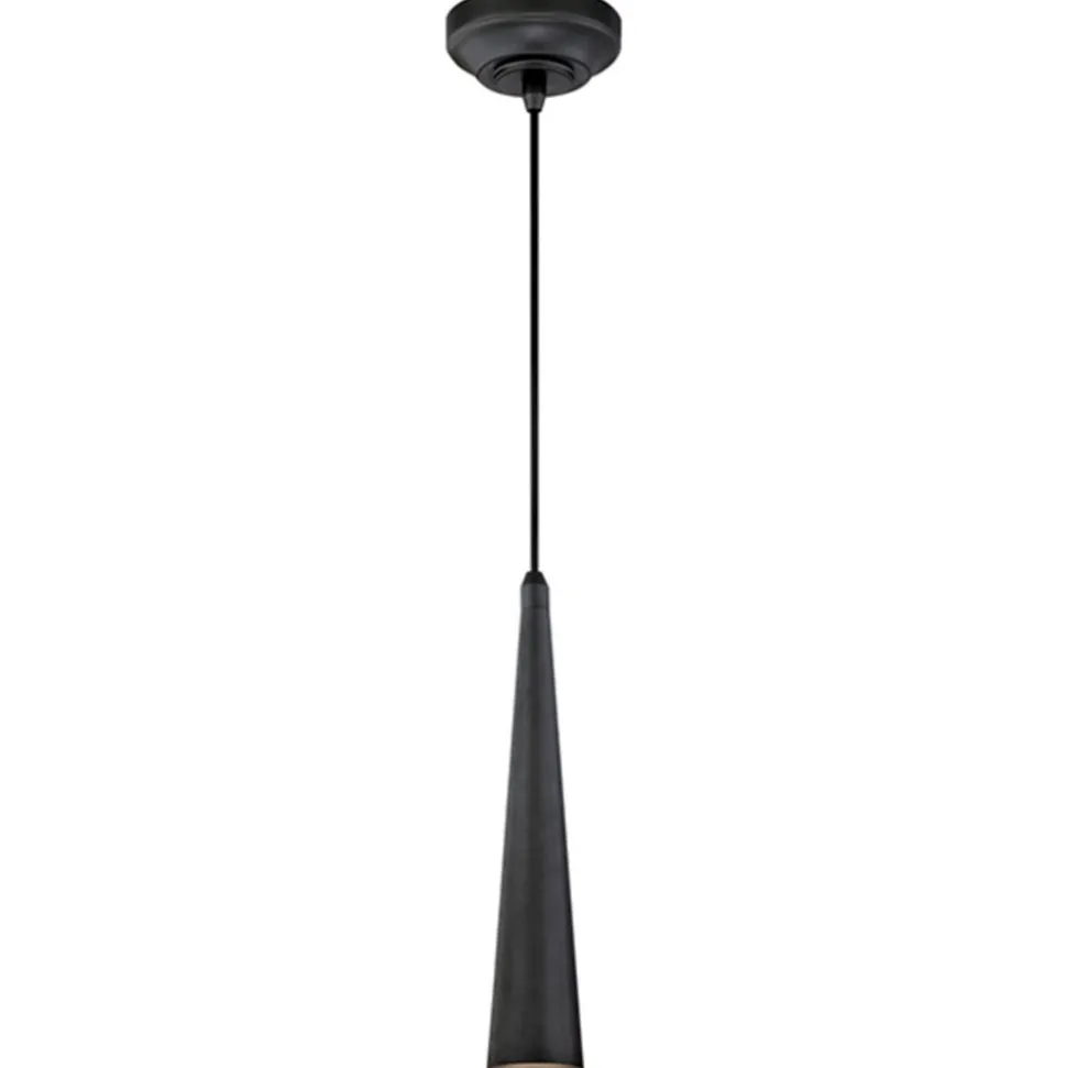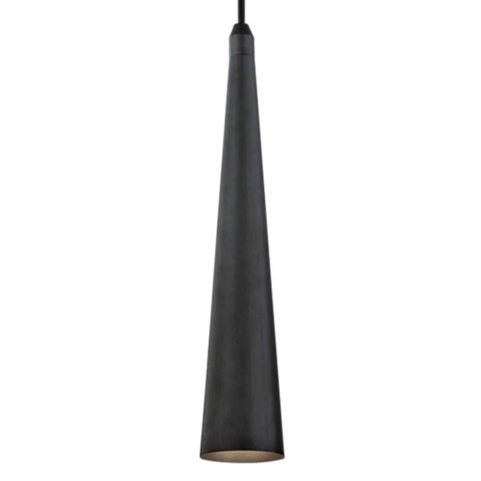 Denne puristiske LED-loftlampe består af en smal lampeskærm, der spidser til i toppen. Da skærmen er lavet af metal, kan der ikke slippe lys ud i siderne. I stedet bliver den varme hvide lysstråle samlet og udsendt nedad.