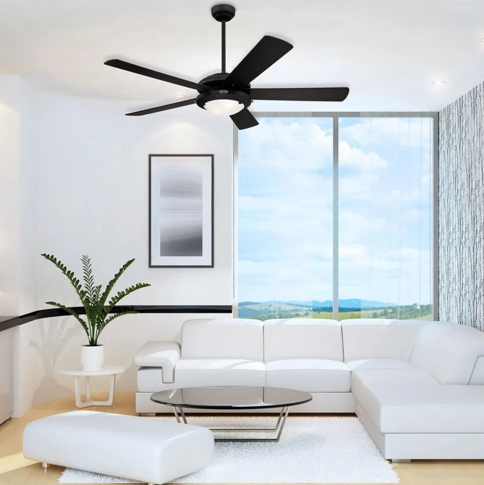 Kraftfuld ydeevne, et fantastisk design samt 5 vendbare vinger i mat sort og sølv, dette kendetegner loftventilatoren Comet, der betjenes via en integreret trækkontakt. I midten er der installeret en glaslampe, hvormed Comet også klarer belysningen i rummet.