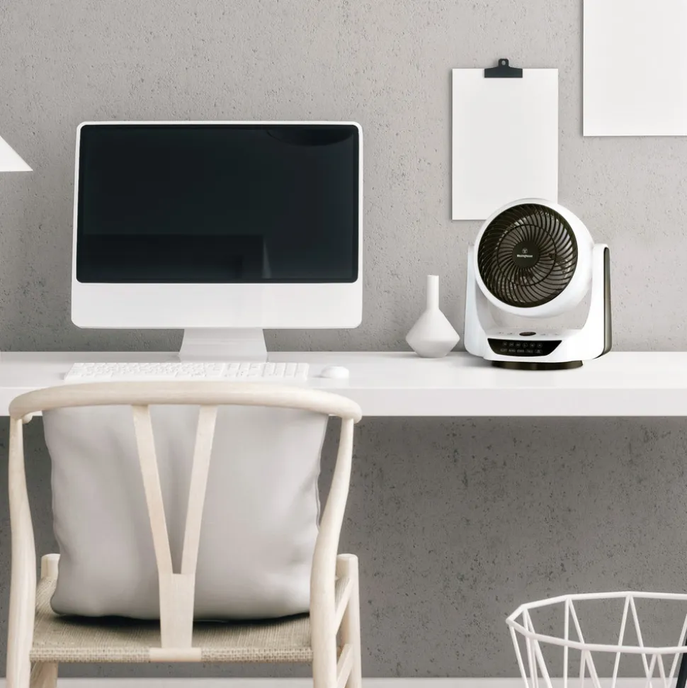 Denne bordventilator et moderne look med sit hvide plasthus med sorte dæksler og kontrolflader. Cormac overbeviser med sin alsidige justerbarhed, som lover den rigtige køling til mange formål. Leveringen er fuldt samlet.
