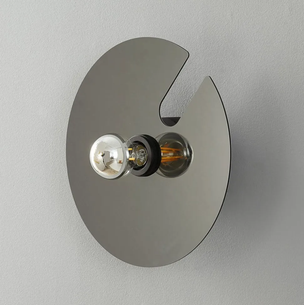 Mirro rund væglampe med reflekterende lyseffekt Den runde væglampe Mirro er et absolut højdepunkt til vægge i stuer og gangarealer. Navnet antyder en association til det engelske ord for spejl – Mirror – og et blik på armaturet er nok til at se hvorfor: Skærmen består af en skinnende lakeret metalskive, hvori lyset fra lampen i midten reflekteres med stor effekt. Accentbelysning med en fortryllende stil, som forstærkes yderligere af udskæringen på den ene side af skiven, hvilket skaber en ekstra lyseffekt på væggen. Lyset kan placeres, så udskæringen er på det ønskede sted. Hvis man placerer flere armaturer på række eller i et rum, kan man opnå en opfriskende lyseffekt ved at rette udskæringen i forskellige retninger.