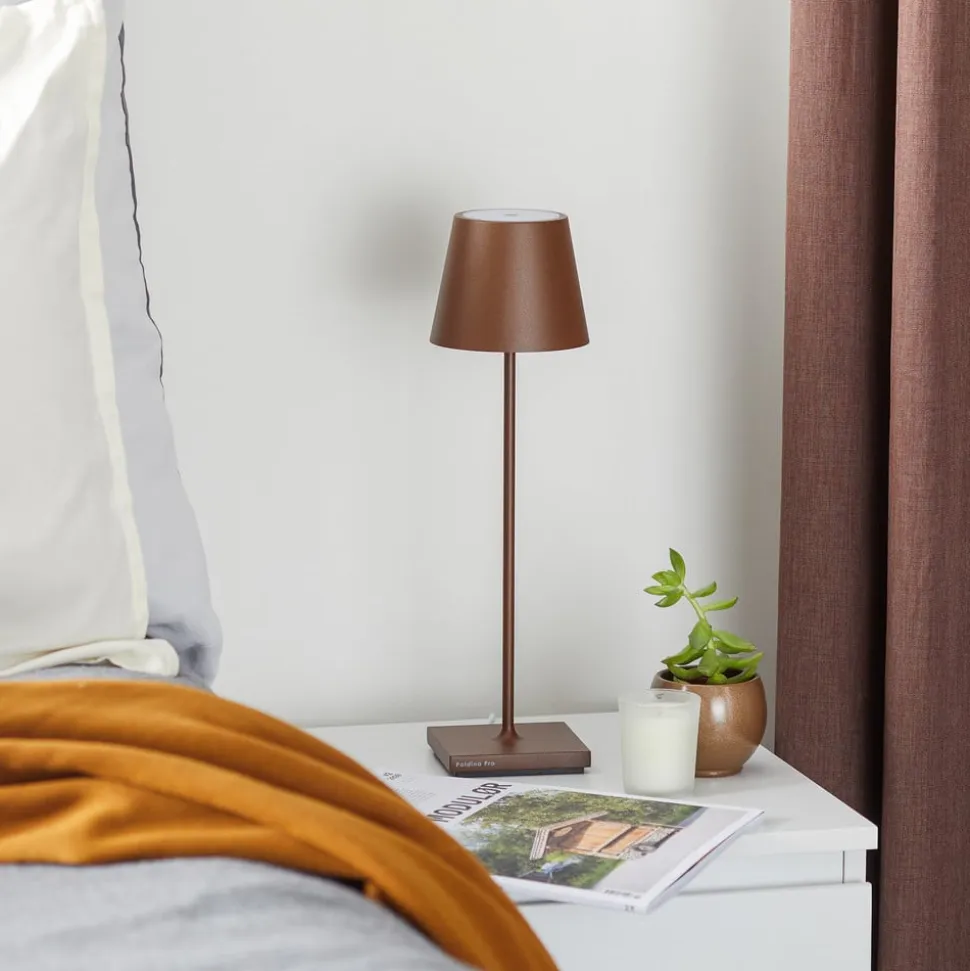 Zafferano Poldina LED-bordlampe med genopladeligt batteri, mat, brun